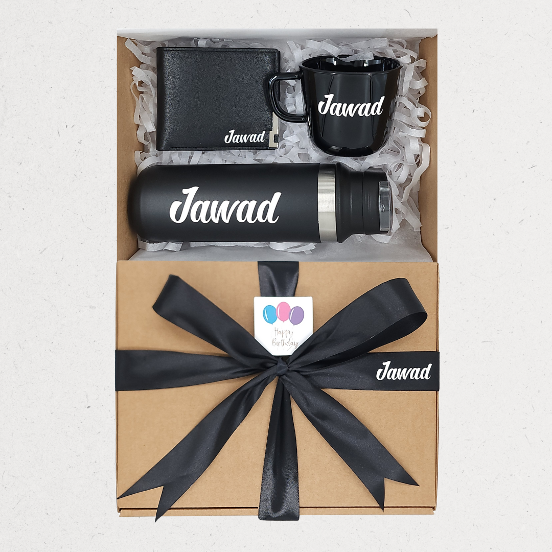 هدية تجمع بين القوة والأناقة. السيد الرياضي تشمل قارورة رياضية باسمك، محفظة فاخرة، وكوب شخصي — الهدية المثالية للرجل العصري من The Gifts Maker.