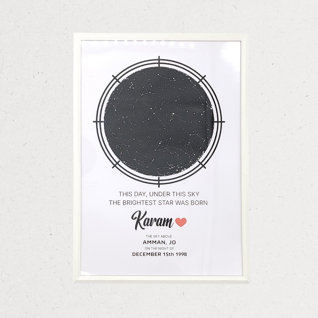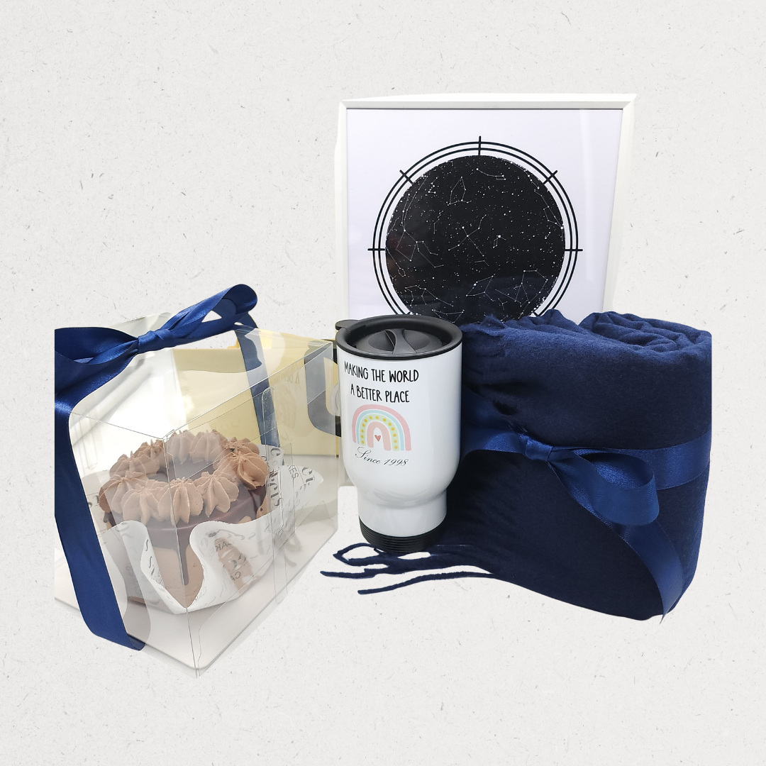 My Star Box is a thoughtful gift inspired by moments written in the stars. It includes a duo gift box with a mini cake, a cozy winter scarf, a personalized tumbler, and a custom star map frame — capturing a special date, place, or memory in a truly meaningful way. Perfect for birthdays, anniversaries, and heartfelt surprises.